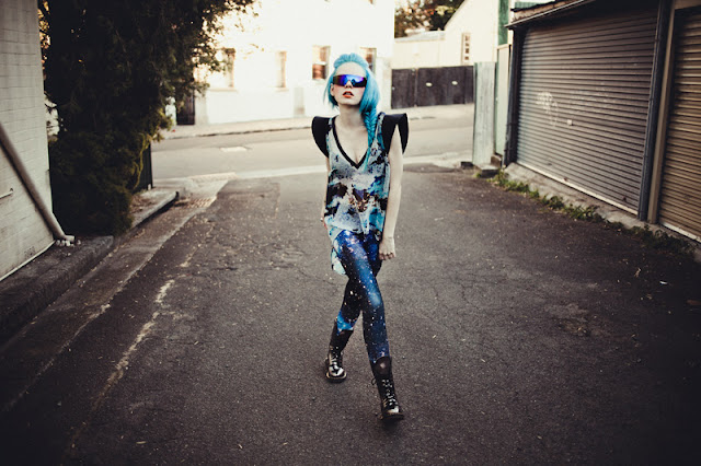 ..guess what, I urgently NEED these galaxy leggings, they are so freaking asjfpflasfdk!! You can buy them at Black Milk Clothing for like 75$ approximately and… uh, no. I mean, they’re just printed leggings, right? I could buy a super high brand jeans with that money! So no galaxy tights for Sam. But still, deep in my heart wishing…. (actually I would buy everything featured in these pictures, it’s *exactly* my kind of style. And her hair, of course, I would instantly dye it turquoise if I didn’t need to bleach my whole hair. I’m pretty sure it won’t survive another bleach so it will be just pink for me.