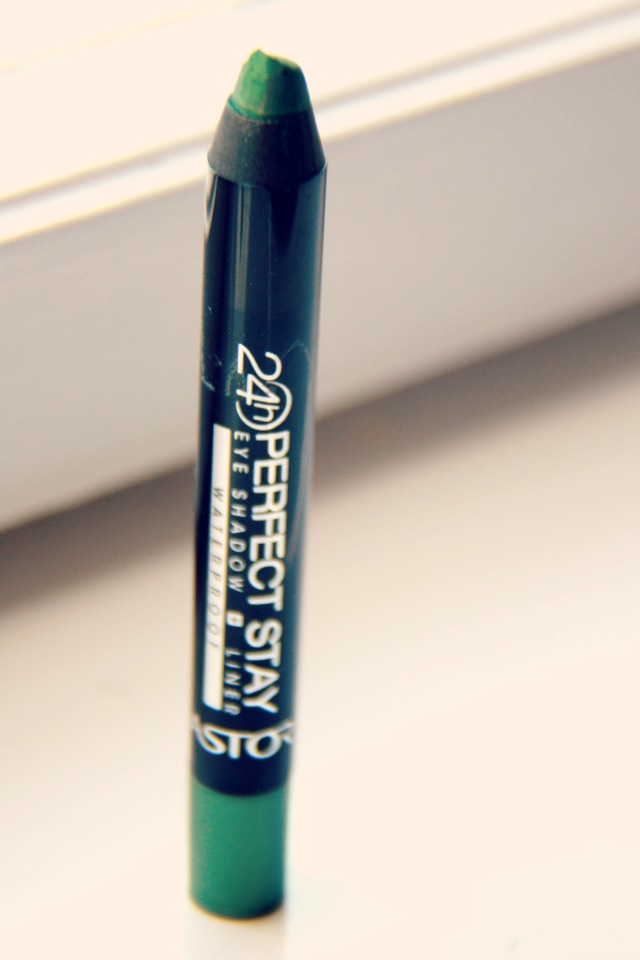 I just looooove the shade of this liner! Green is my favorite color but usually not as an eye make-up. But I think it goes really well with this kind of look! I personally doubt though if it would be good to use as an eyeshadow liner (what it claims to be) because it’s rather sticky once applied and not easy to blend. I guess I will only use this as a liner but for this, it really works great! The liner is available in the colors Creamy Taupe, Intense Blue, Vivid Green, Deep Purple, Ultra Black and Cosmic Grey. I love all the shades and guess I will definitely buy Taupe, Purple and maybe even the blue because it’s such a nice and vibrant color. You can see all the colors they have by clicking here. I of course will let you know and show you at least some swatches if I’m able to grab the other colors at well! Oh and they are 7$ each.