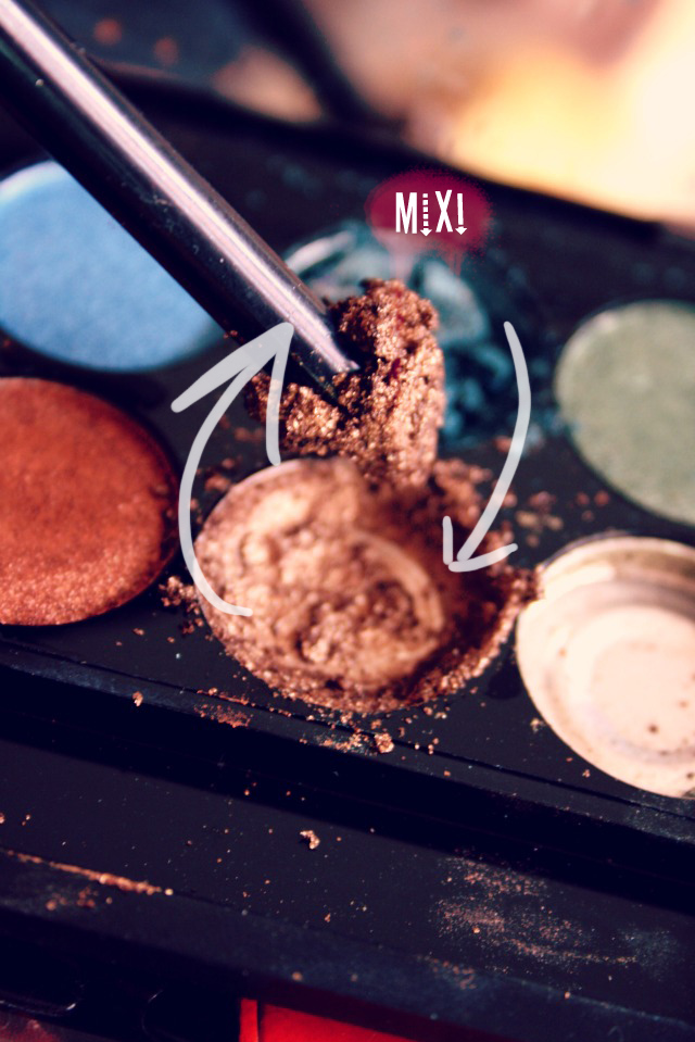 First of all; crush your eyeshadow in really tiny pieces that it gets really powdery. I know, this step probably hurts the most. (While crushing I was like: WHAT IF IT DOES NOT WORK??) But, trust me. It will work. And it works best the smaller your already crushed eyeshadow gets. Note: this works best if you crush your eyeshadow in another, separate jar but I really didn’t want to separate the shadows of the palette. It can get a little messy :<