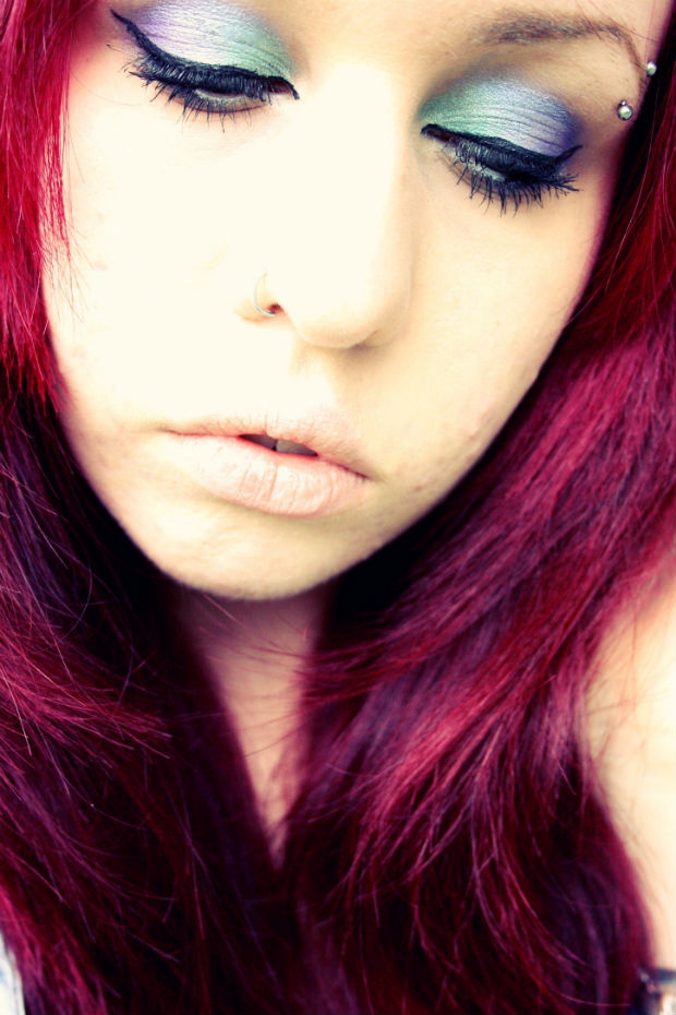 You can also see my troubled skin and that was one of my better days @_@” Hope that nightmare is over soon, I feel really uncomfortable with such troubled skin :/ How do you like the look? Green + purple is one of my favorite combinations of all time to be honest! My favorite sneakers are green/purple as well ๐ There was a lot of blue involved too but my color washed it out as always. Need to practice to take make-up pictures, I am definitely not the best one so far.