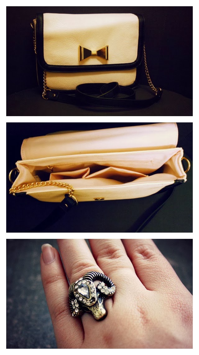 #1 I bought this super pretty awesome little bag for halloween! We went club hopping and I realized that I only have that huge bag here in Bonn which I take to classes everyday and that in no way I have anything to go to a party, not even speaking of a club. I originally wanted to buy just a cheap tote (still waiting for money gnagnagna they said 15th Nov it should be there.. crossing fingers) but I had a discount coupon and fell in love with that bag the moment I saw it. The nude-almost pinkish color, the little leather black details, all the gold details – perfect! I also think it has the perfect size for clubbing (it’s about DIN A5) – I fit inside some of my makeup, mobile phone, keys, huge headphones, ipod etc. I wish I would go to a party more often ;_; Oh but wait, Thursday…