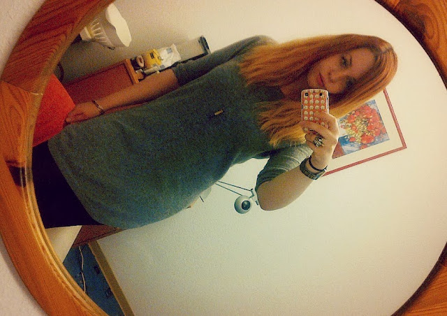 Here’s the long sweather I bought – it just fits me like a glove, so happy! Nothing special but pretty nice for autumn – and can’t really complain for 4โฌ. It’s a little bit loose which I like. And you can see part of my living room – it’s super old fashioned because my landlord lady is quite the lady but I got used to it (; (And no, again, I have no fullbody mirror which is the main reason of no outfit posts at all ;___;)