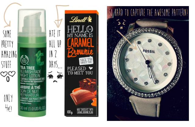 I couldn’t find the Fossil watch online so I don’t know which one it is :/ Maybe it was leftover in stock because it was the last one in the shop. Retail price was 90β¬, usually the price is between 130 – 160β¬! It had a white band but I changed it to a nude one π The pattern is sooo beautiful!