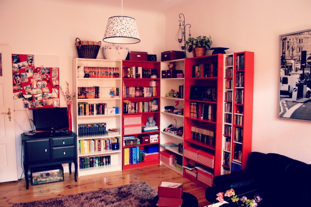 I need lots of space for all the books I read, I love reading <3 I basically took black, white and red as the color concept for my living room to not go too colorful.