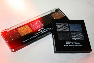 | Also bought NYX Glitter Cream Palette in Sweet Chocolate Browns and BYS Animal Instincts Eyeshadow Palette with Greyish shades. |